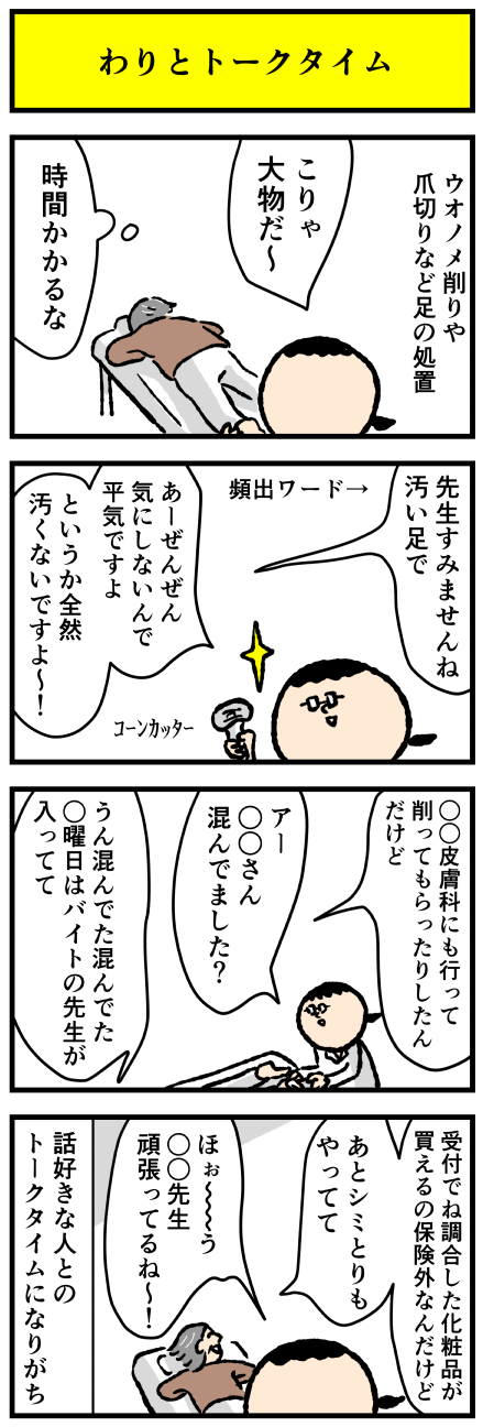 2020年10月19日 外来処置のトークタイム アロ~ハ☆今日も元気なデルぽんで~す☆本日は外来な漫画ー!外来処置のトークタイムな瞬間を漫画にしたよ!どうぞー!!足の処置、けっこう時間かかることが多いので、ベッドに寝てもらってやらせてもらうことが多いのだが、話好きな相手だとこんなふうにトークタイムに進 カテゴリ: デルマンガ