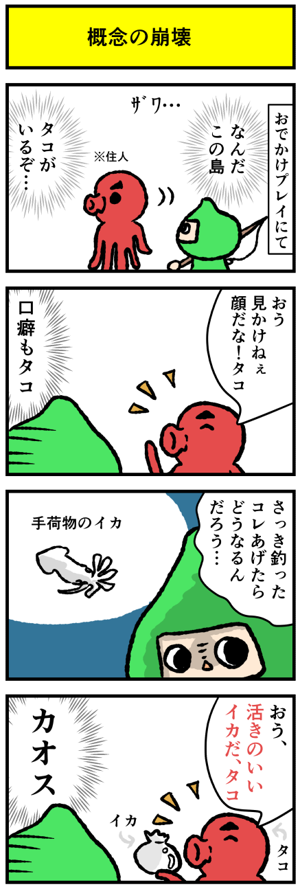 2020年05月07日 あつ森にっき。〜概念の崩壊〜 アロ~ハ☆今日も元気なデルぽんで~す☆本日は、あつ森な漫画〜!タコとの交流を漫画にしたよー!どうぞー!!いきのいいイカだタコ声に出して読みたくなる日本語あのイカお部屋に飾って飼ってくれてるかな。。イカを飼うタコ。。概念の崩壊。。。Nintendo Switch Onlineに カテゴリ: 日常マンガ