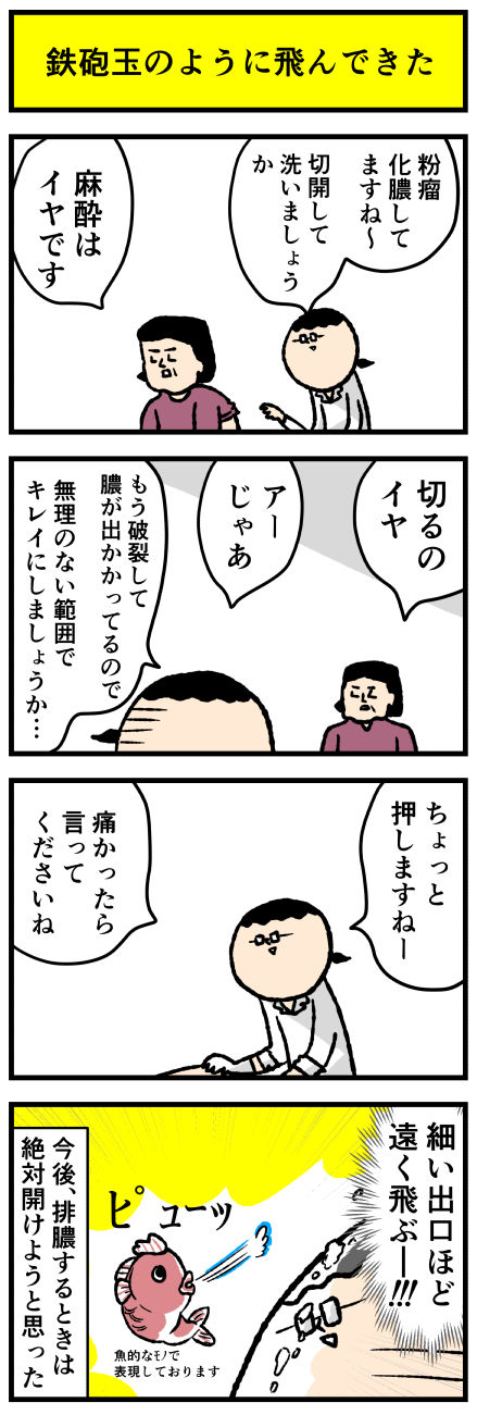 2023年02月23日 【漫画再掲】切開しない排膿で後悔したこと(ケアネット第73回) アロ~ハ☆今日も元気なデルぽんで~す☆先月のケアネット(会員制サイト)漫画の再掲です!元記事こちら↓ どうぞー!!メガネと前髪が被爆した・・・OTLこの後、テンションがだだ下がりしたことは言うまでもない・・・排膿するなら!ちゃんと開ける!!メガネに誓う!!! カテゴリ: デルマンガ