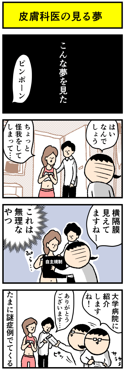 2016年10月31日 医師は症例の夢を見る アロ〜ハ☆ 今日も元気なデルぽんで~す☆ みんなは夢って覚えてる派かなー?! デルぽんは、毎日覚えてるよー☆ 本日は、今朝見たばかりの ホヤホヤの夢を4コマにしましたー☆ どうぞーっ! デルぽん夢は現実に影響されやすいたちなんだけど、 症例の夢めっちゃ見 カテゴリ: 日常マンガ