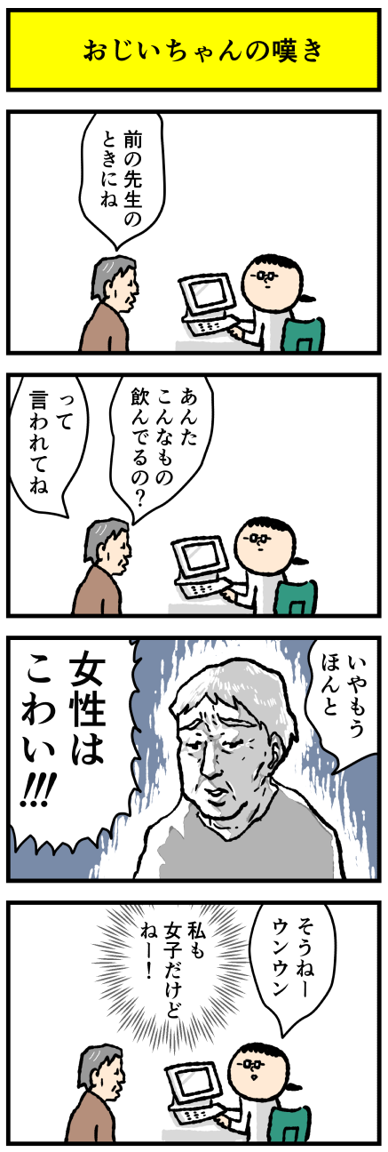 2020年10月13日 おじいちゃんの嘆き アロ~ハ☆今日も元気なデルぽんで~す☆本日は外来な漫画☆彡おじいちゃんの嘆きを漫画にしたよー!!!どうぞー!!!おじいちゃん、女医でよっぽど怖い思いをしたのか・・・それとも個人的に女性関係でこわいおもいをしたことがあるのか・・?!真に迫る嘆きでおもわず心 カテゴリ: デルマンガ