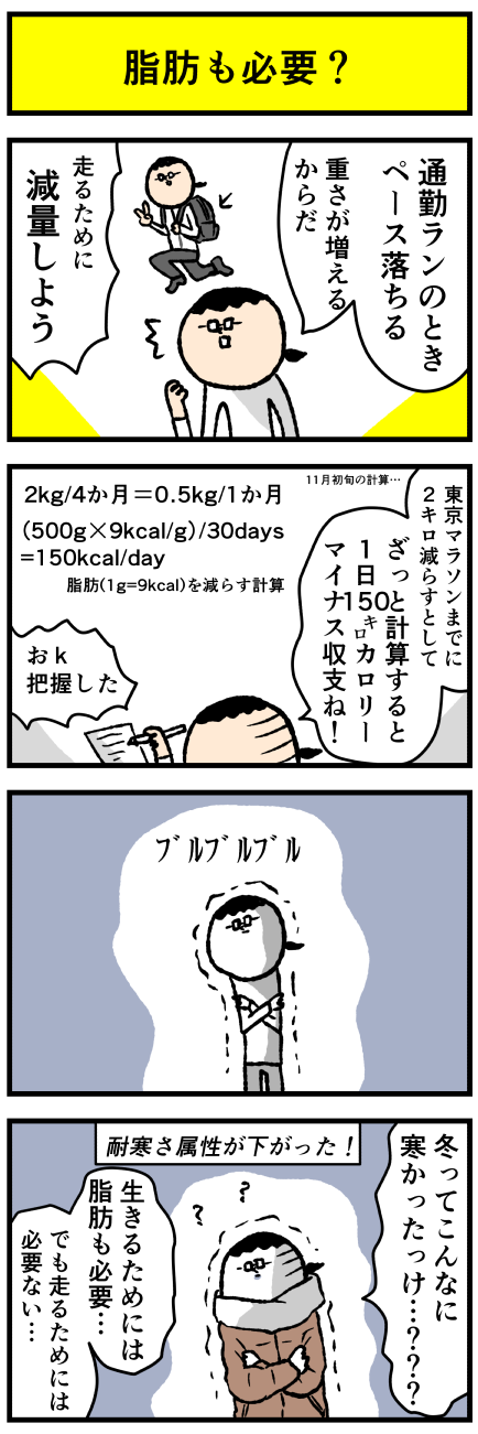 2022年11月29日 脂肪も必要かもって思った アロ~ハ☆今日も元気なデルぽんで~す☆本日は減量なお話ー!!生きるためには脂肪も必要・・??どうぞー!!!重さと速さはトレードオフ・・・脂肪は保温とクッション性!生きるためには必要ね・・・ 体脂肪がだいぶ落ちて市役所にある両手両足で測る機械だともうすぐ20% カテゴリ: 日常マンガ