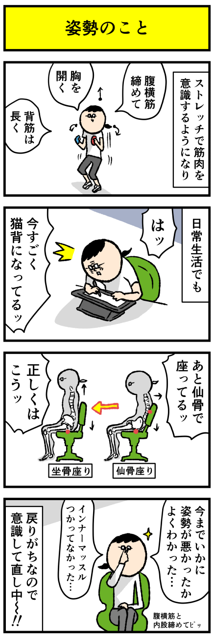 2021年11月13日 姿勢のこと アロ~ハ☆今日も元気なデルぽんで~す☆ほんじつは日常な漫画~☆彡筋肉を意識するようになって変わった姿勢のことを漫画にしたよー!!どうぞー!!とくに姿勢についての本を読んだとかではないのだけど普段のストレッチや運動で使う筋肉や関節のポジション(というか姿勢 カテゴリ: 日常マンガ