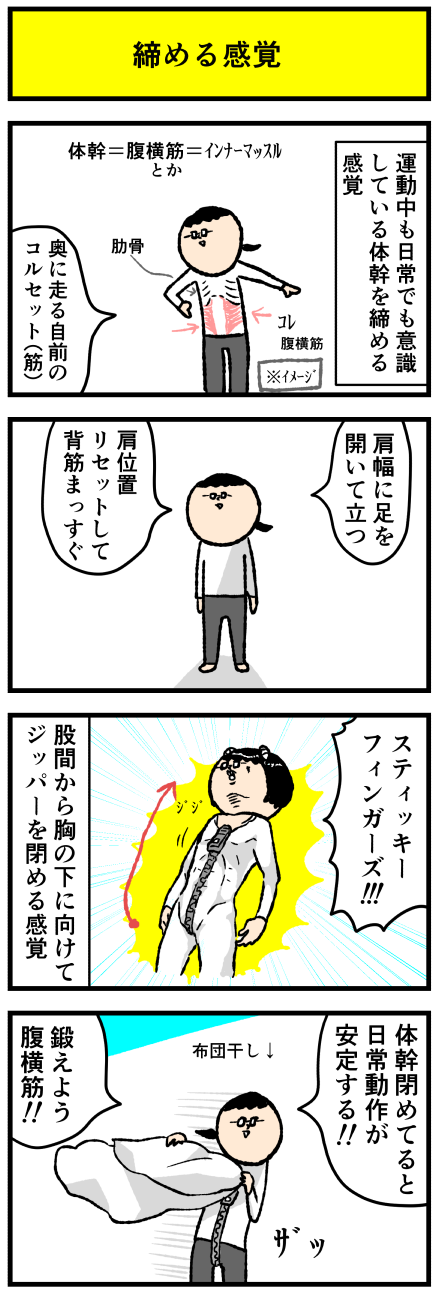2021年12月26日 日常で意識してる体幹を締める感覚 アロ~ハ☆今日も元気なデルぽんで~す☆デルぽんローカル筋の本読んでから意識してることがあるんだけどねー!!今日はそのことについて漫画にしたよ!!どうぞー!!うまく伝わるかわからないけど股間からみぞおちらへんにかけてジッパーを閉めていく感覚キュッとやると腹 カテゴリ: 日常マンガ