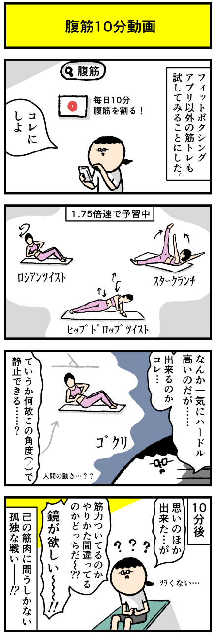 2021年10月28日 筋トレ開始1か月・最近はじめたもの アロ~ハ☆今日も元気なデルぽんで~す☆本日は筋トレの話!最近、フィットボクシング(アプリ)以外の筋トレも始めてみたよー!!今日はその話でーす!!どうぞー!!たぶん以前より筋肉少しはついてるのとポジションが正しくないのとその両方・・・OTLちなみにこの動画!! カテゴリ: 日常マンガ