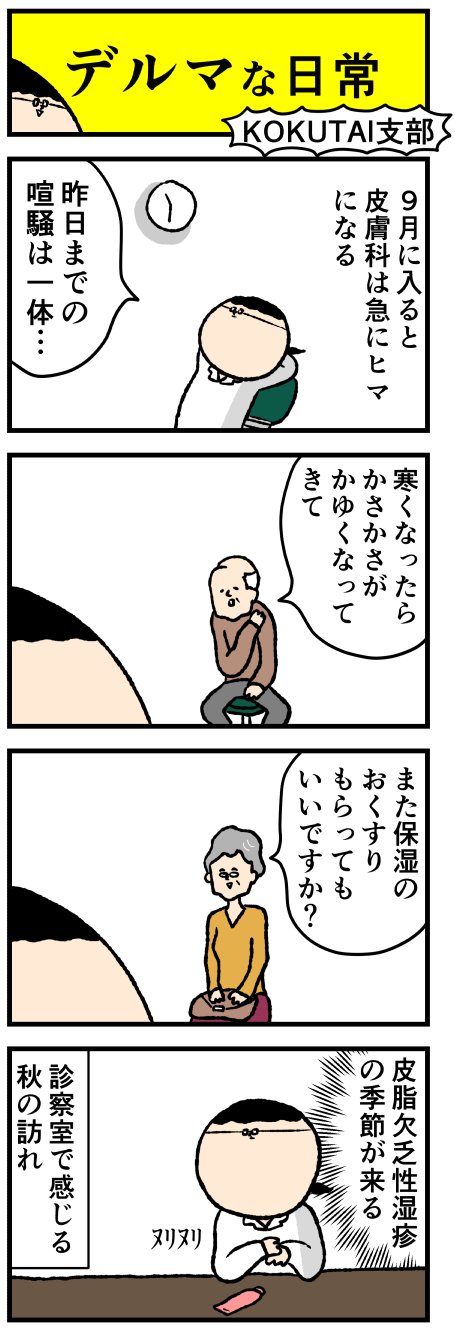 2017年06月27日 【KOKUTAI vol.5】皮膚科の夏 アロ〜ハ☆ 今日も元気なデルぽんで〜す! 爪続きなので本日はKOKUTAIからこんな漫画をご紹介☆ 皮膚科の夏について!まんがにしたよ〜〜 どうぞー!! 爪切り処置は立派な外来処置でーす! (爪甲除去) 季節問わず一年中やる処置だけど、 夏はね!爪の伸びる速度が カテゴリ: デルマンガ